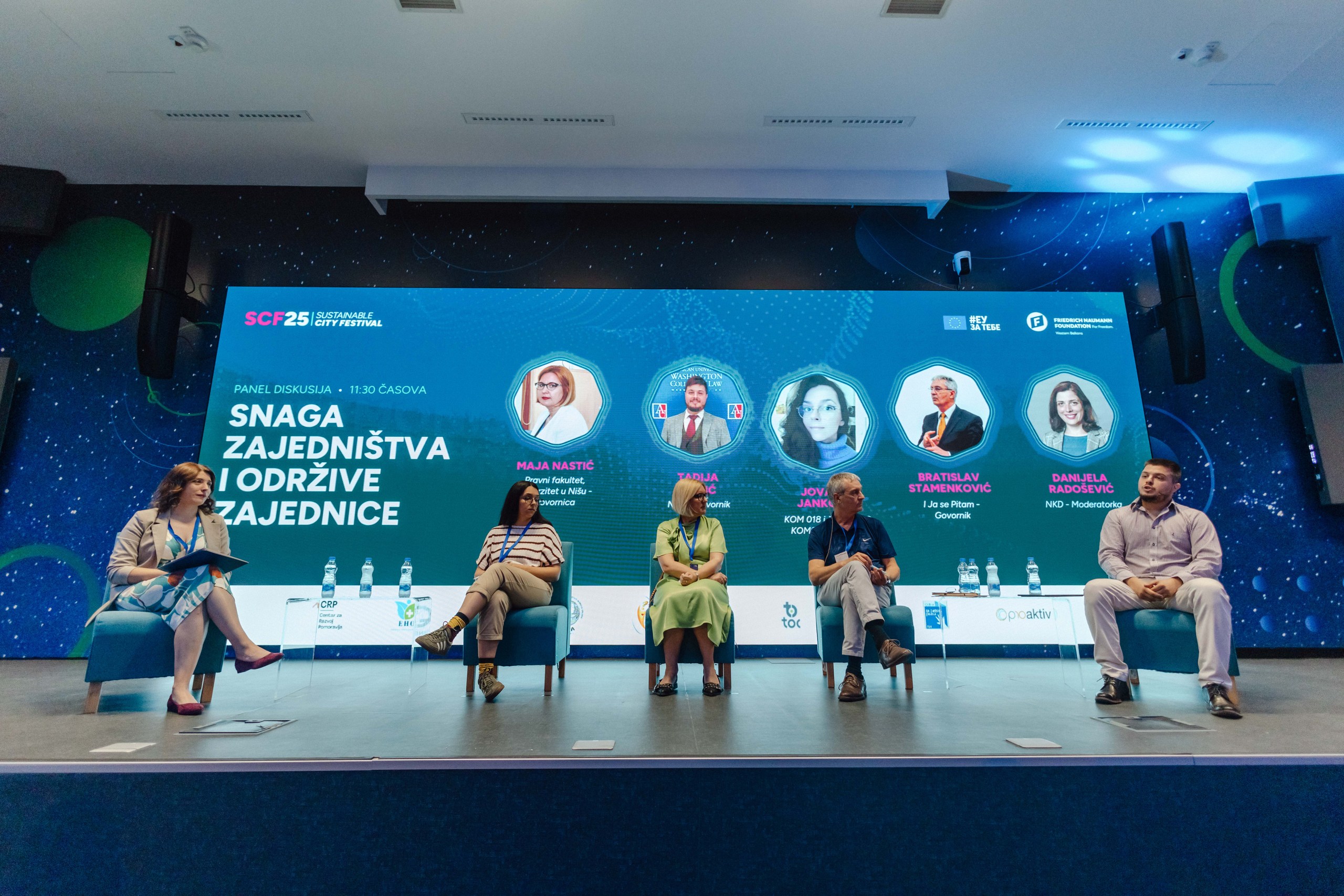 Na panelu se razgovaralo o tome na koje načine zajednice poput mesnih, seoskih i stambenih mogu da rade na održivosti i šta sve to podrazumeva? Sagovornici su se složili da je saradnja sa institucijama na lokalu moguća, ali će se promena desiti, tek kada se uključi cela zajednica.