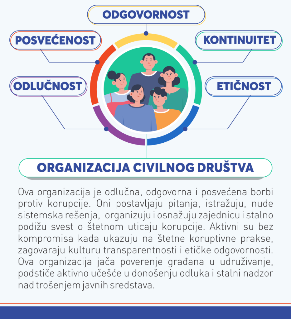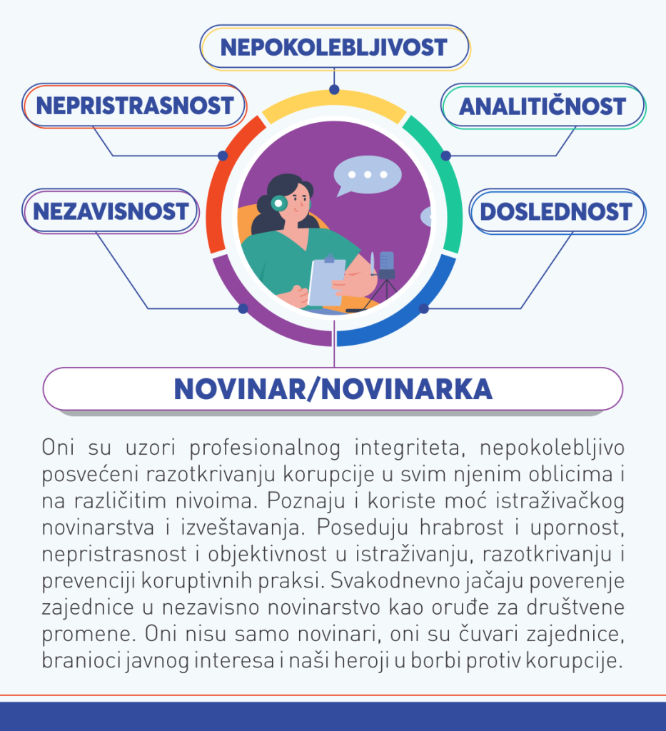 - javno zagovaranje i doprinos reformskih procesima u vezi sa borbom protiv korupcije